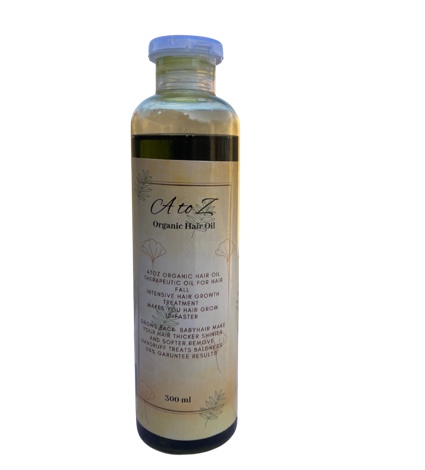AtoZ Organic Hair Oil 100% Natural • Cold-Pressed • Multi-Benefit Formula Transform your hair with the power of nature! 🌿 AtoZ Organic Hair Oil is a luxurious blend of pure, cold-pressed botanical oils specially crafted to nourish your scalp, strengthen roots, and restore natural shine from root to tip. Infused with Coconut, Castor, Almond, Olive, Amla, and Argan Oils, this potent formula deep| Available for Cash On Delivery ? | Yes |