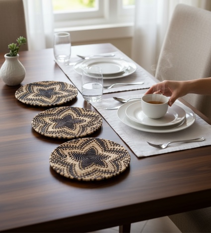 Monochrome Star Placemats ✨ Handcrafted elegance for your table! Size: 12 inchesAvailable for Cash On Delivery ? | No |