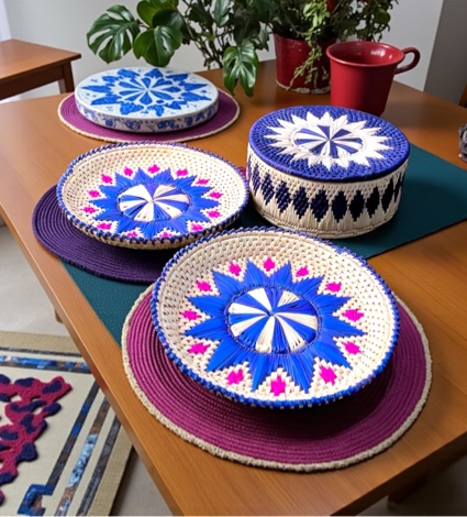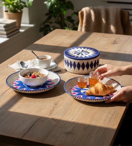 Blue Trio Set – Set of 3 💙✨ A cool, classic combo for your dining or decor! Handwoven in striking royal blue with a pop of pink — perfect for everyday use and hosting. Price: Rs 3,690 What’s Included? 🧺 Hotpot — 10.5 x 4 inches 🌟 Two Chingairs — 12 inches eachAvailable for Cash On Delivery ? | No |