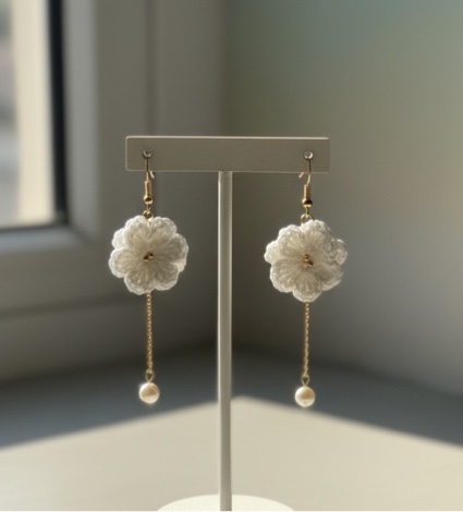 Delicate and feminine, these handmade crochet floral earrings feature soft white blossoms accented with golden details and dainty pearl drops. Lightweight and elegant, they add a touch of charm to both casual and dressy looks.Available for Cash On Delivery ? | Yes |