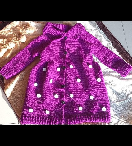 crochet full sleeves coat in beautiful shade of purple color to keep your little ones cozy comfy and stylishAvailable for Cash On Delivery ? | Yes |