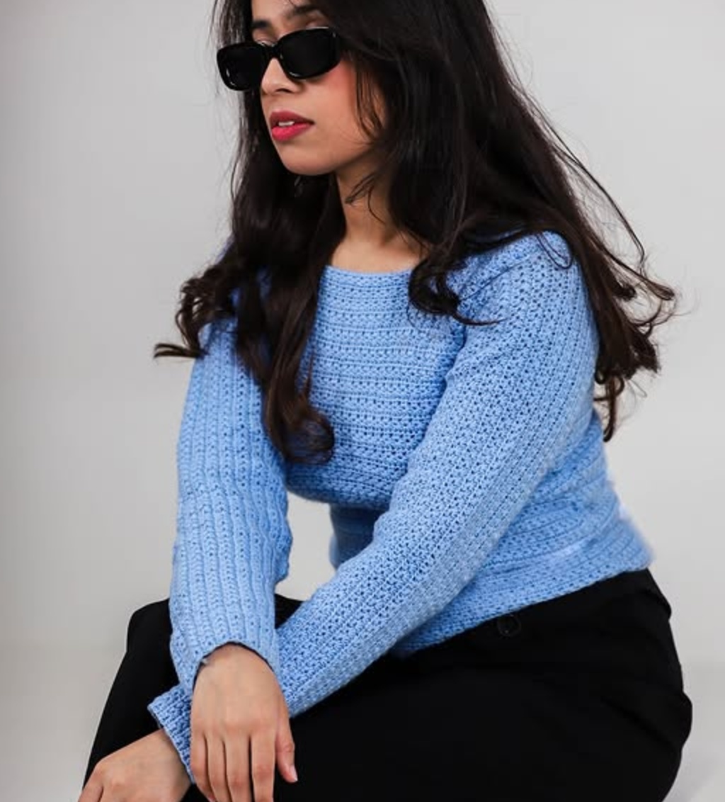 Handmade crochet top in a soft sky-blue shade, crafted with intricate stitches for a cozy yet elegant look. Designed with a flattering fit and full sleeves, this piece blends comfort with timeless style — perfect for casual wear or dressing up with accessories. Each top is uniquely handmade, making it a one-of-a-kind wardrobe essential.Available for Cash On Delivery ? | Yes |