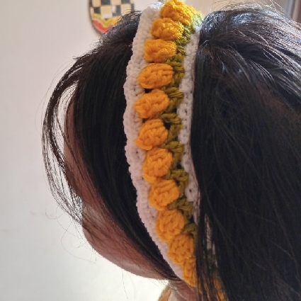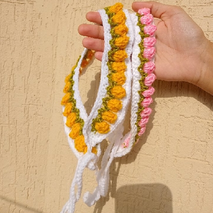 crochet tulip pintresty hairband 🌷🎀✨️ Give your hair a soft, floral touch with these beautifully handcrafted crochet hair bands. Each band features delicate 3D mini flowers stitched on a sturdy yet gentle white base—perfect for everyday styling, festive looks, and desi-core aesthetics. 🌸 Features 100% Handmade with premium soft acrylic yarn 3D Floral Pattern – Available in sunny yellow and bl| Available for Cash On Delivery ? | Yes |