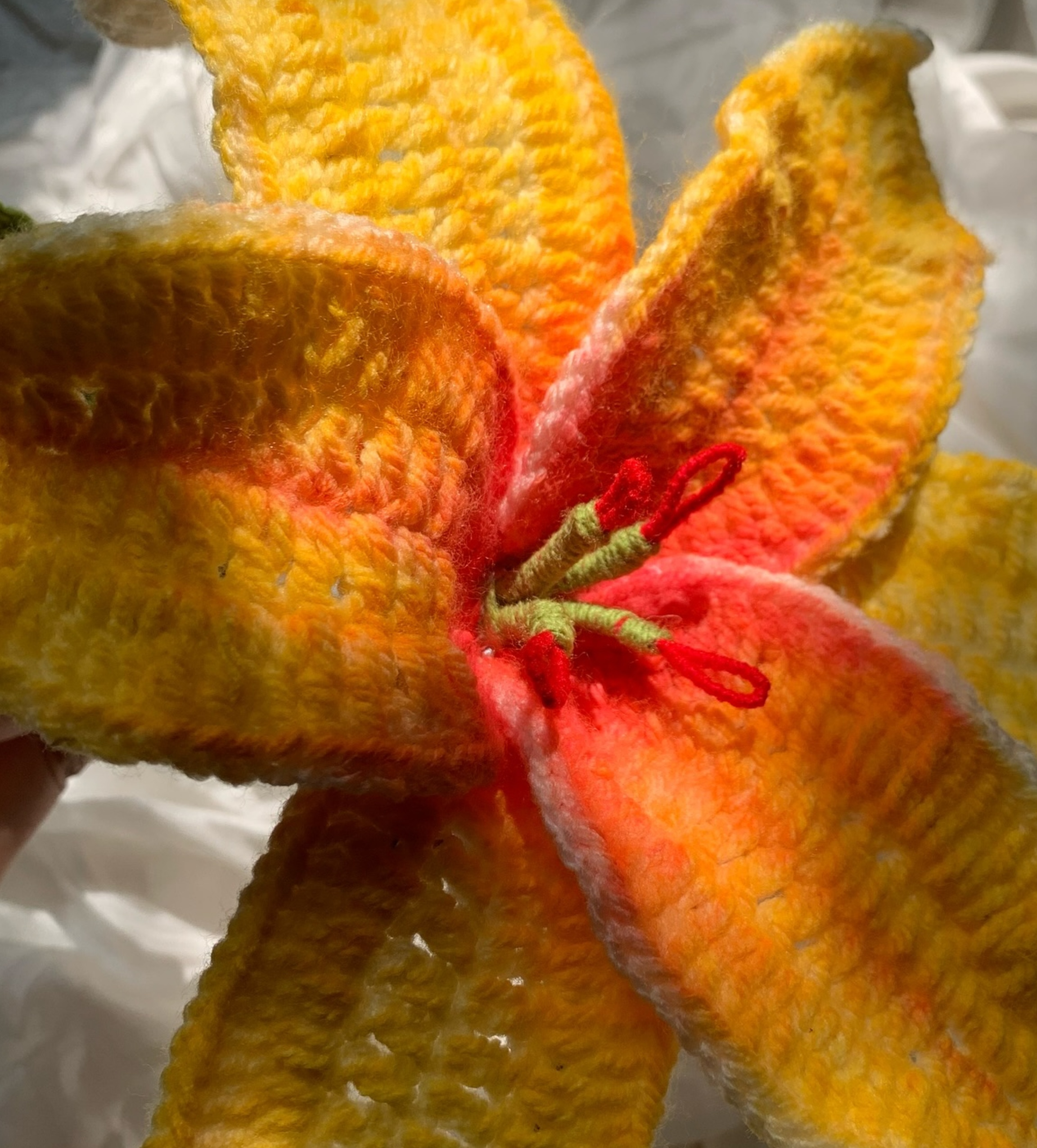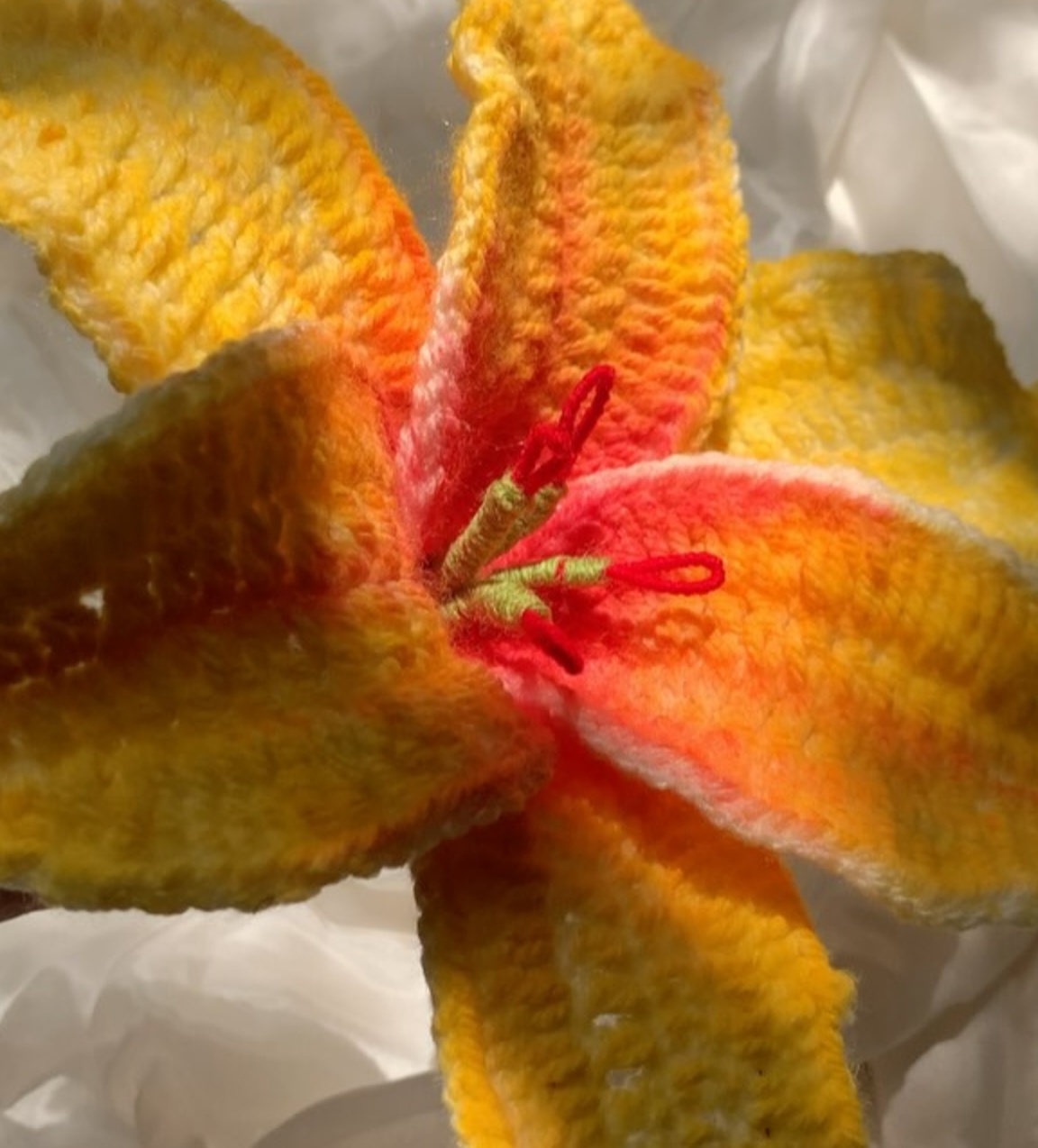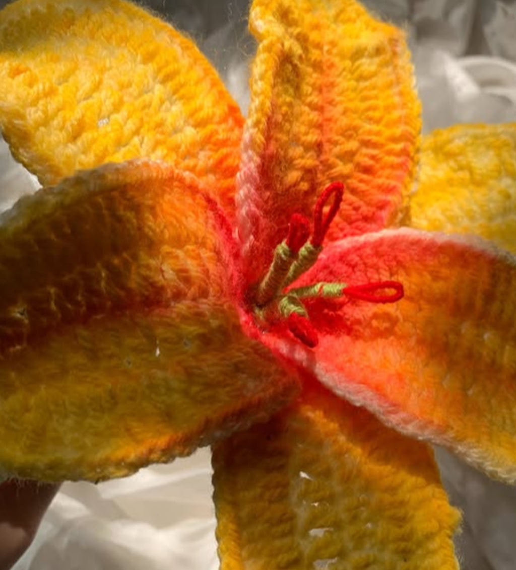 A crochet waterlily crafted with elegant gradient colors, measuring approximately 15 inches — a beautifully large and eye-catching flower.Please note that the pictures shown here are cropped; to view the full flower more clearly, visit our Instagram page @_crochetrella_| Available for Cash On Delivery ? | Yes |