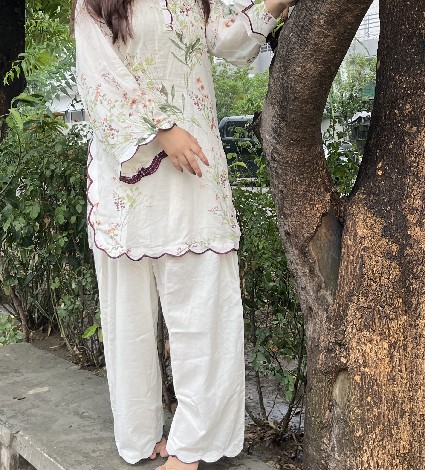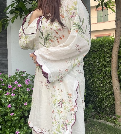 Embrace effortless elegance with our latest creation. This dress features a pristine white canvas, delicately brought to life with vibrant floral patterns in shades of green and orange. The design is tastefully framed by a rich, dark purple trim, adding a touch of sophistication.| Available for Cash On Delivery ? | Yes |