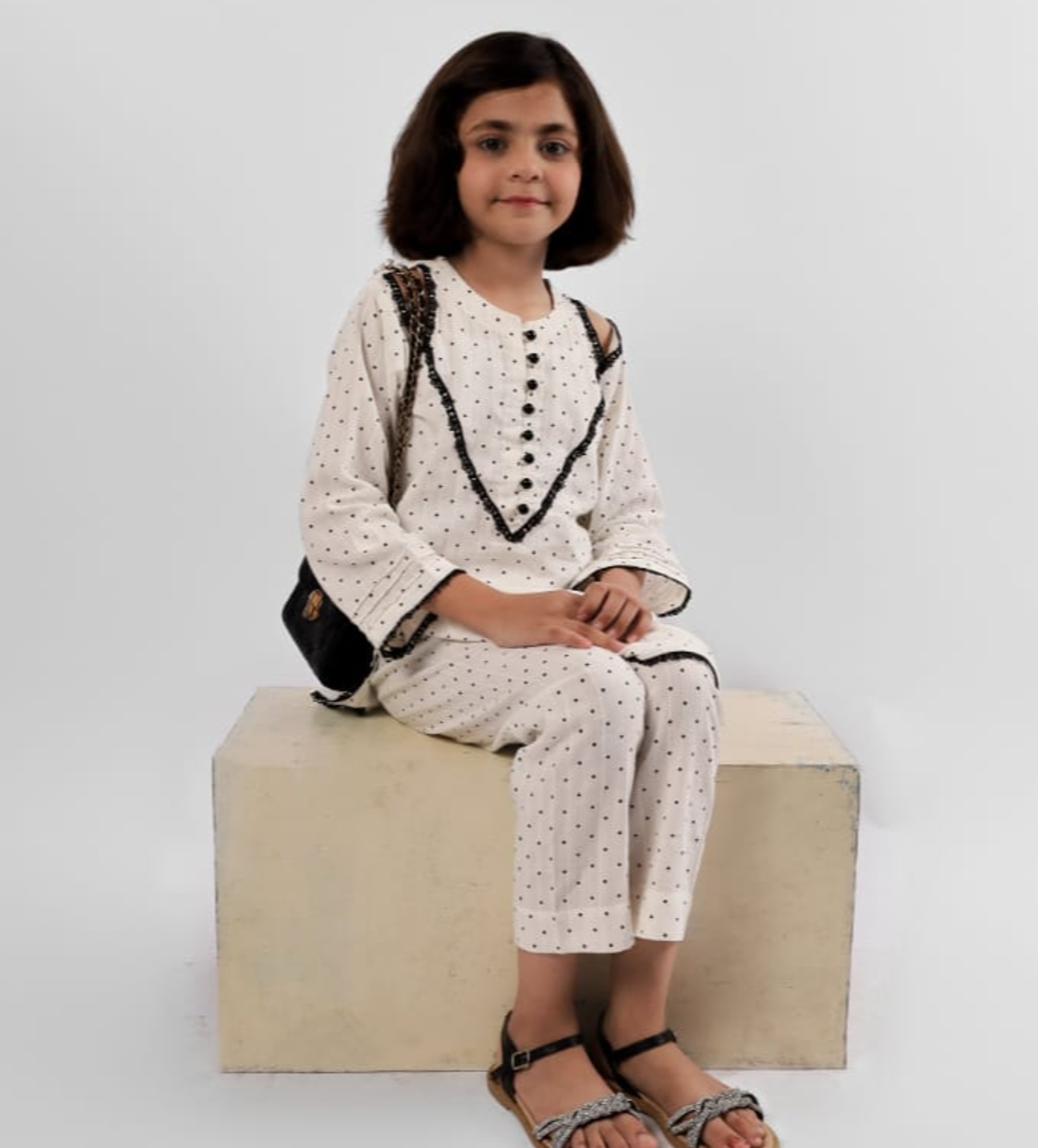 Fabric : cheese lawn Colour : white Details : straight shirt with peek-a-boo neck-line and straight pants Design : black polka dotAvailable for Cash On Delivery ? | Yes |