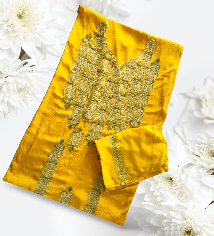Kashmiri embroidered pure crape silk unstitched 3-piece