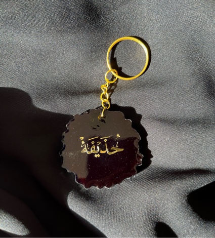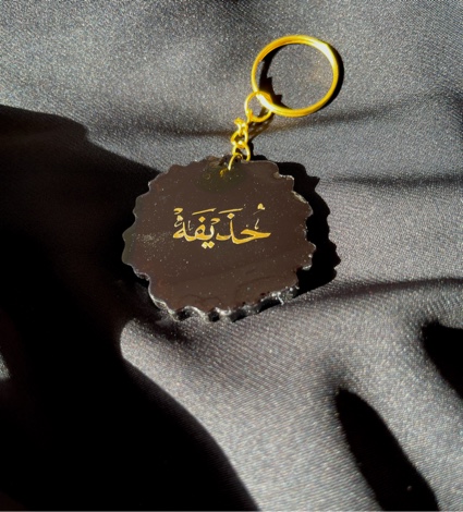 Resin Keychain having name on it in Arabic Calligraphy Color: Balck Sticker: Golden It can be used as dailywear on bags, keys, etc. Perfect item for gift Eco Friendly It can be customized as well You can get it customized in any color and can get any name on it in any language. *Price vary from design to design*Available for Cash On Delivery ? | Yes |