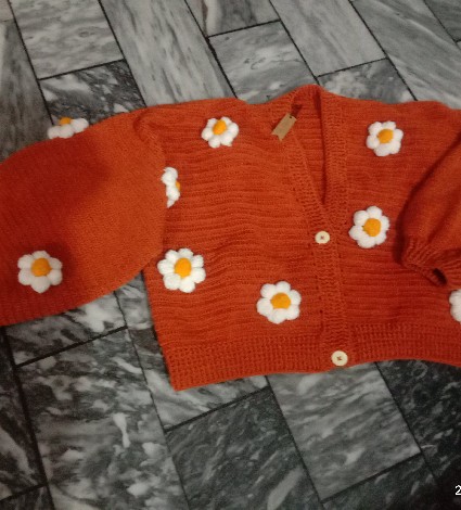 crochet hand made daisy cardigan products. useable yarn is very important qualities. daisy 3d flowers very beautiful look like.Available for Cash On Delivery ? | No |