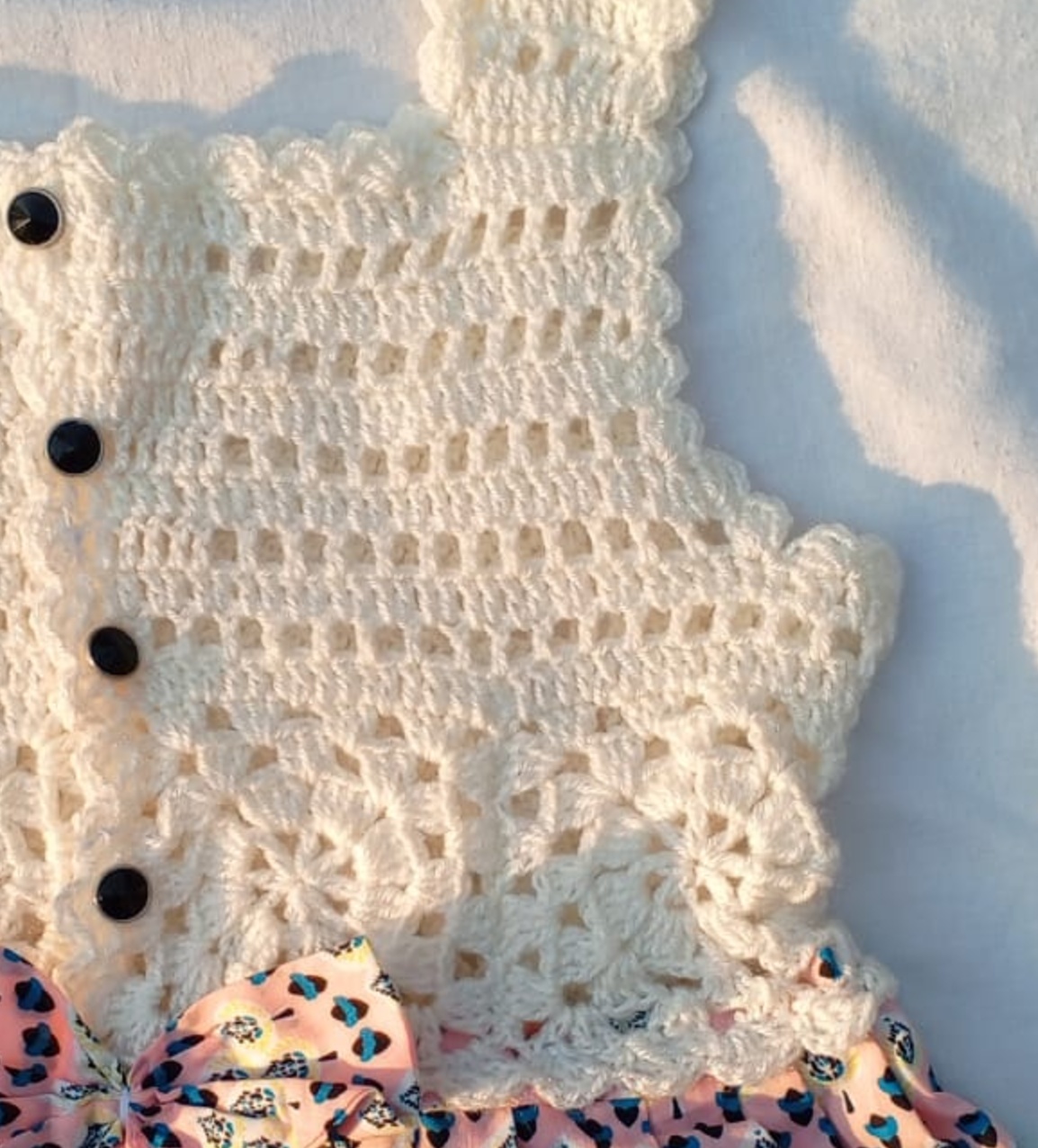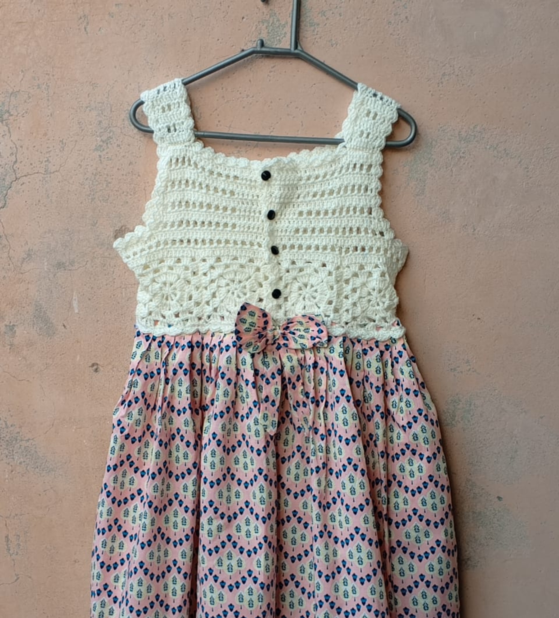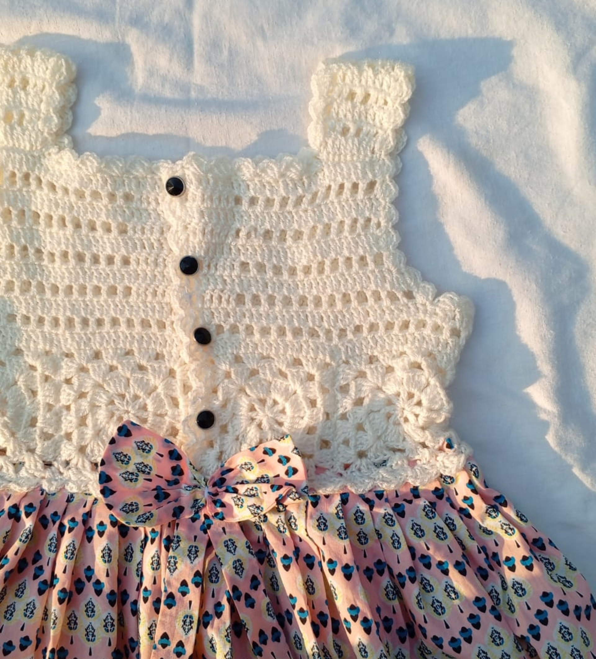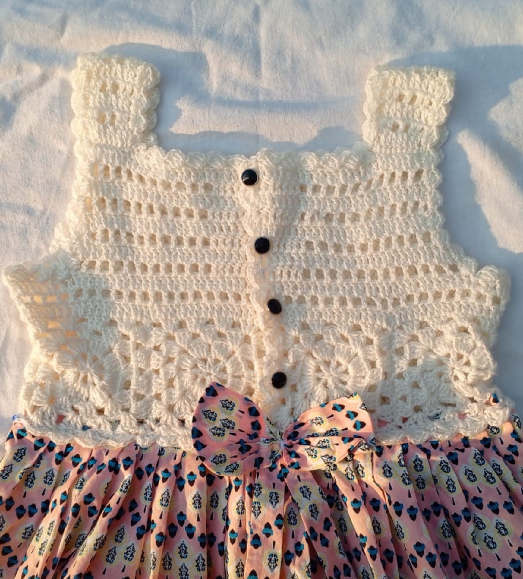 white crocheted frock body with design and cotton cloth bodyAvailable for Cash On Delivery ? | Yes |